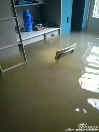 6月27日消息,江蘇南京暴雨已持續超24小時,暴雨導致多處街道、房屋被淹。據網友爆料,南京理工大學宿舍也因暴雨浸水被淹。圖為被淹的南京理工大學宿舍。