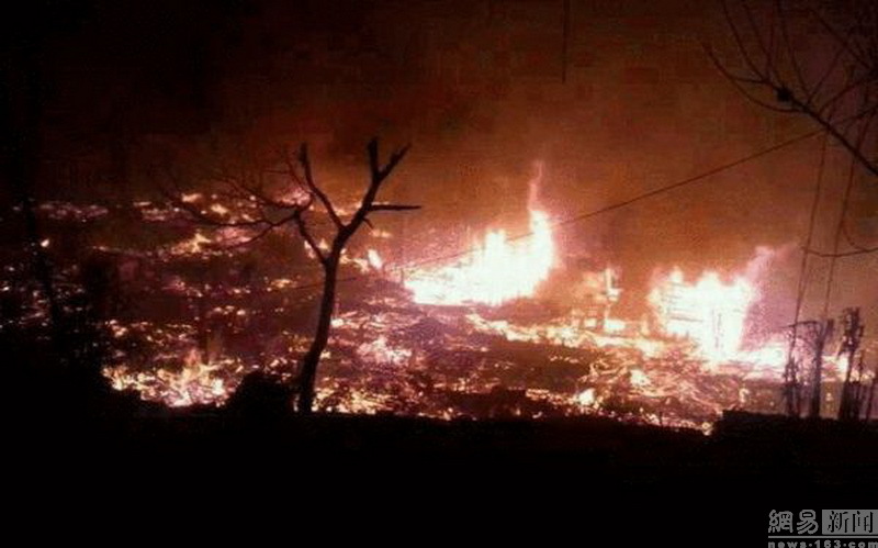 2014年1月26日,貴州省鎮遠縣報京鄉報京大寨發生火災。圖為火災現場。