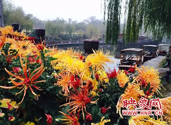 清明上河園滿園的菊花依舊艷麗繽紛、菊香四溢。紅的似火、黃的賽金、白的勝雪、粉的如霞,可謂是多姿多彩。