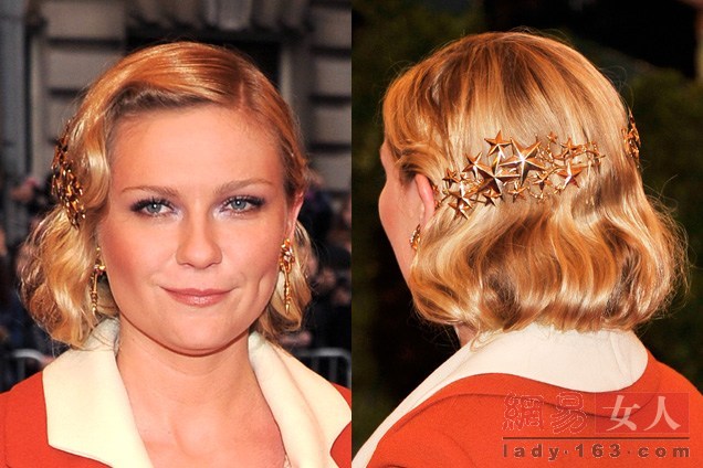 手指波浪卷+星星發飾:克爾斯滕·鄧斯特