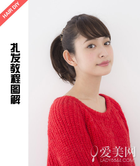 step5:將發辮纏繞在馬尾上。