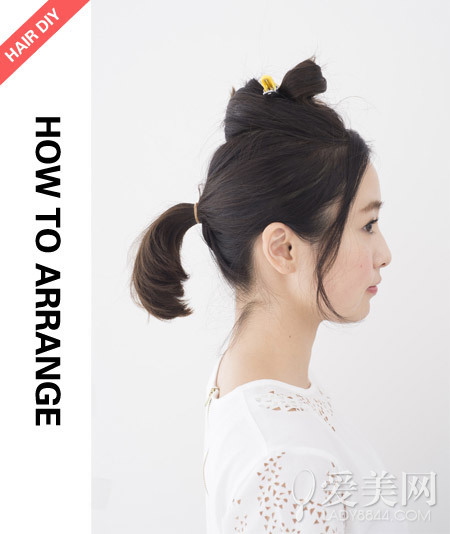 step2:留出頭頂的頭發將腦后的頭發綁成馬尾。