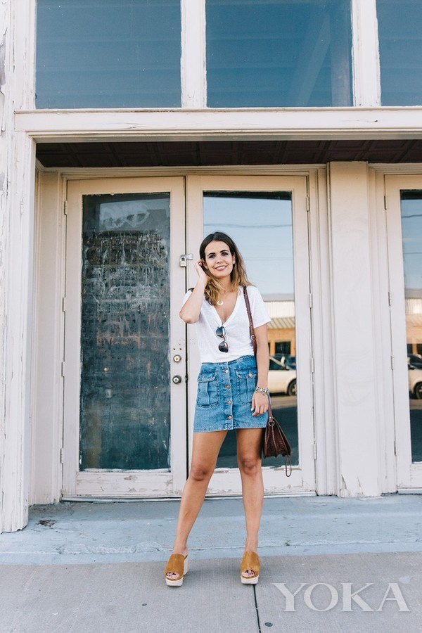 牛仔短裙不得不說!今季實在爆火,無論是破洞還是紐扣款,都能成為夏季扮時髦的最佳利器,其實這樣的短裙最不怕走光,硬朗的牛仔面料,才不會輕易隨意擺動,甚至走光露底哦