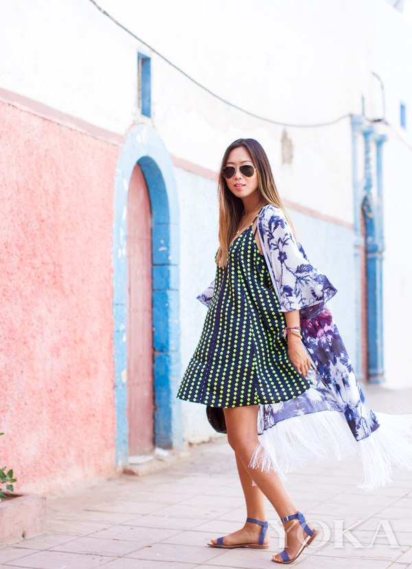 連衣裙可以搭短褲!但不是保險健美褲!這里說的短褲最好是牛仔短褲,緊身款很顯身材,今季風靡的鏤空民族風短裙就和牛仔短褲很搭,性感大長腿,即便走光也無所謂,牛仔短褲又可以讓你變身性感長腿女郎。