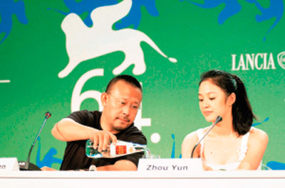 2001年,還是新人的她剃了光頭在《天地英雄》中反串慧覺和尚,并結識了姜文。因為周韻在中央戲劇學院時的老師張仁里,同時也是姜文當年的專業課老師,這對年齡相差15歲的師兄妹,更加有了共同語言。得到了姜文的青睞,周韻被姜文推薦給自己正在拍的另一部戲,這就是由陳逸飛執導的電影《理發師》。