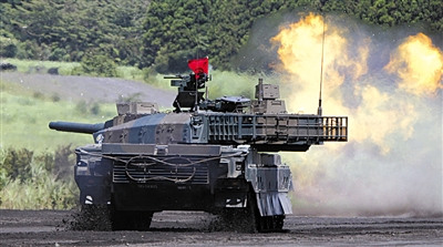 10式坦克:日本國產的主戰坦克,最大行駛速度可以達到70千米/小時。坦克全重比其他國家的主戰坦克輕了8至15噸,火控系統能確保高效摧毀各種目標,號稱“亞洲第一坦克”。