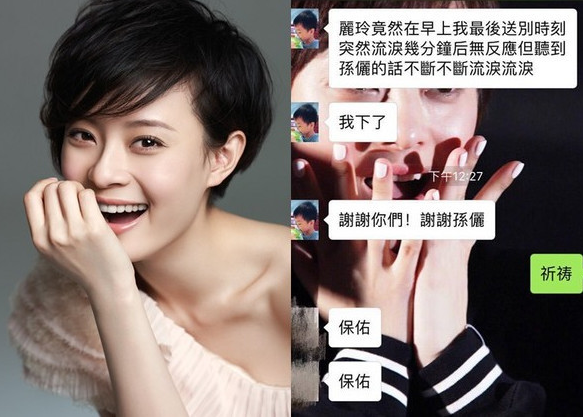 據臺灣媒體《東森新聞云》3月13日報道,大陸女星孫儷因為演出《后宮甄嬛傳》、《羋月傳》等戲,紅透兩岸三地。最近有名叫“麗玲”的粉絲腦死昏迷36小時;沒想到孫儷得知,本人竟錄音,聲聲喚“趕緊醒過來”;并答應愛畫圖的她,等她醒來,“我就坐在你面前讓你畫。”沒想到她聽完竟流淚,也醒過來了。