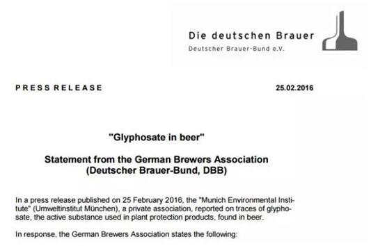 新聞中提到,14款熱銷啤酒檢測出農藥殘留的結果,是由慕尼黑環境研究所公布的研究報告中顯示的。對此,鐘凱表示,慕尼黑環境研究所是一個非官方的私營機構,而草甘膦作為合法的農藥在德國和全世界已經使用了長達幾十年。