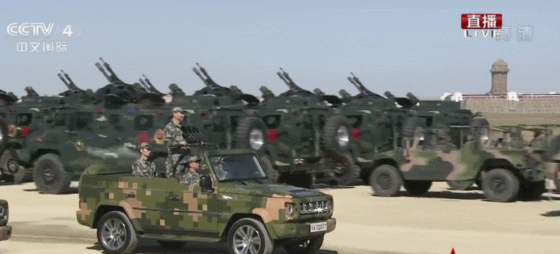 臺灣“中時電子報”報道稱,臺灣媒體人黃煒瀚指出,在習近平總書記閱兵車隊前進的同時,后方一棟比照臺灣“總統府”建蓋的模擬假想建筑,清晰可見。