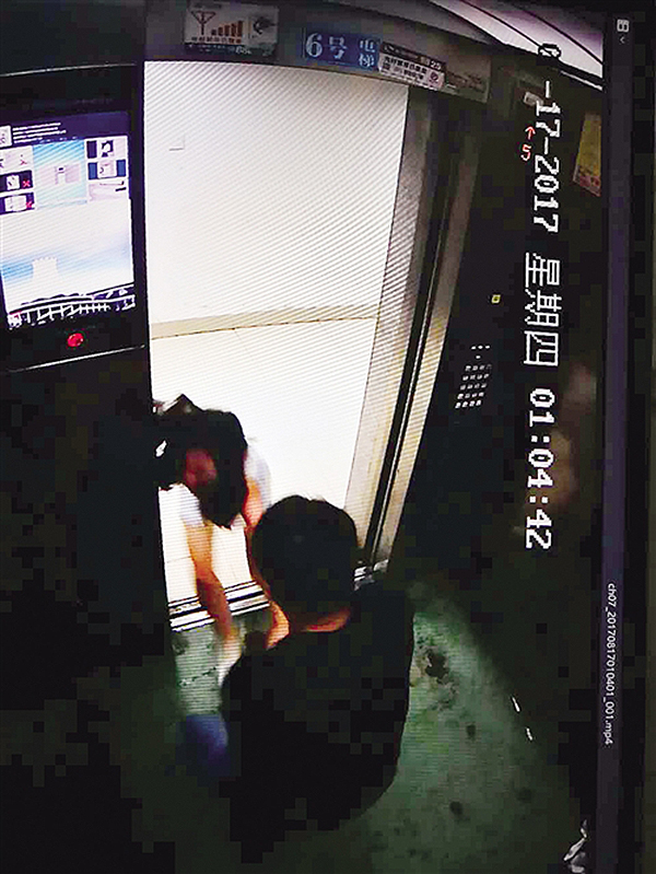 據了解,小冰進入電梯的時間是凌晨1時4分16秒。監(jiān)控畫面上顯示,小冰第一次出電梯的地方在5樓,當時是凌晨1時4分42秒。不過,隨后男子強行把小冰拉回電梯內繼續(xù)猥褻。