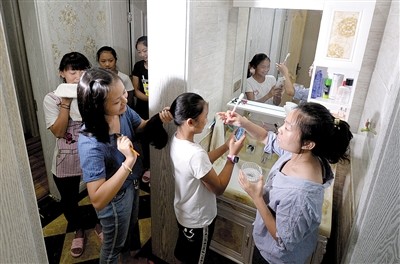 15分鐘的總結會很快結束,孩子們各自洗漱后去房間就寢。記者看到,每個房間要住6個人,除了床鋪上可睡下4個人外,剩下的兩個男生打地鋪,兩個女生則睡在飄窗上。