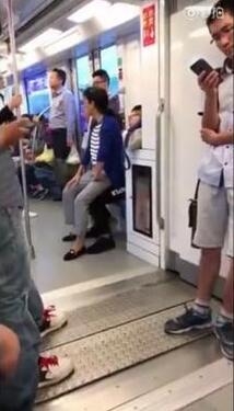 南京地鐵1號線上為了一座位,這位大媽非要認為是老人才可以座,年輕人要讓座,結果一屁股坐在小伙的腿上。小伙子也不動,畫面就僵住了……