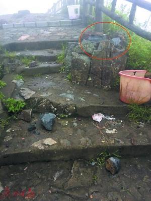 另據隊長羅燦輝在山頂上察看發現,山頂有多塊巨石被雷電擊碎散落在地面上。其中有一塊被擊碎的巨石,后經證實,就是事發時王女士所站的區域。