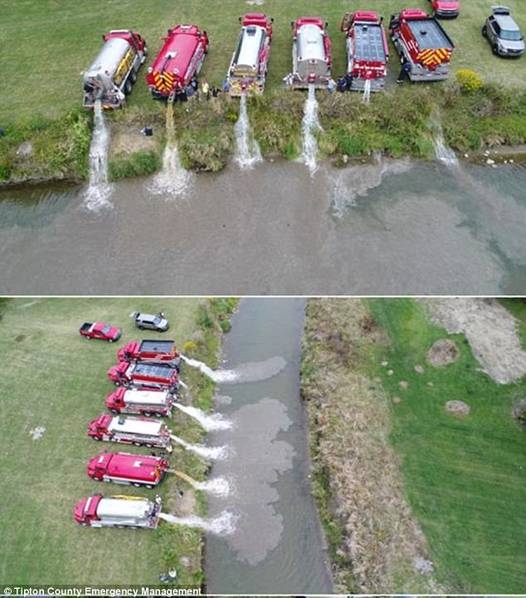 印第安納州環保當局表示,該工廠的牛奶不會對附近的人類或野生動物構成危險,只是得盡快處理以免事情進一步擴大。事故發生后,有關人員將干草包投放到河中以防止牛奶進一步擴散,而清理公司則從河水中清除了約1.4萬加侖(約53噸)的水和牛奶混合物。