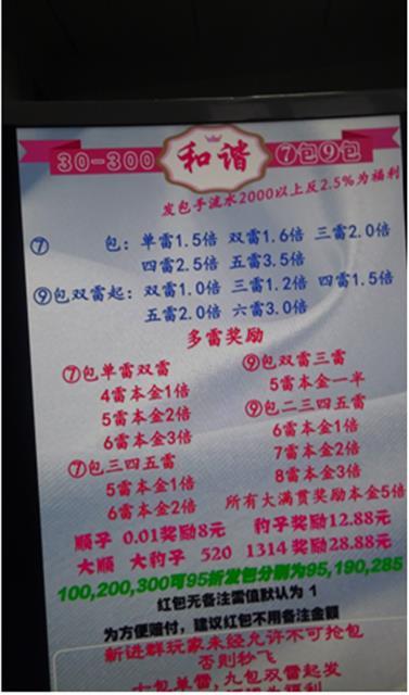 10月11日晚8時許,咸安公安分局治安大隊民警在對旅店業進行巡查時,發現該區一酒店1316房間住宿人員曹某、劉某、殷某、駱某等4人行跡可疑。經對其隨身物品進行檢查,民警發現他們在電腦上利用QQ群搶紅包設置“中雷”的方式組織人員進行賭博,其所建立的“和諧家園30-300多雷群”成員達200余人,涉賭金額巨大。