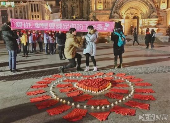 最近,在哈爾濱圣 · 索菲亞教堂前,一位妙齡女子大擺 199 條紅色內褲,陣仗之大引起眾多群眾好奇圍觀。