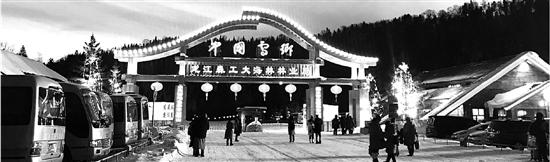 導(dǎo)游在大巴車上推銷了一天,記者晚上終于到了雪鄉(xiāng)。