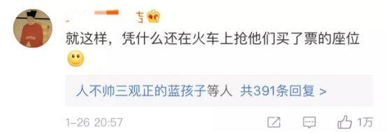 這位網友說:“就這樣,憑什么還在火車上搶他們買了票的座位?”
