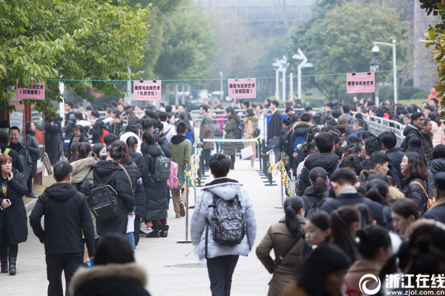 2月24日,浙江傳媒學院2018年播音與主持藝術等藝術類專業復試開考。上午8時,播音樓前候考學生已經排起百余米的長隊。今年,考生多為2000年出生的“千禧寶寶”,雖然校方要求素顏面試,但考生們青春滿滿依然養眼吸睛。