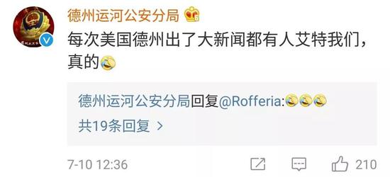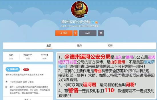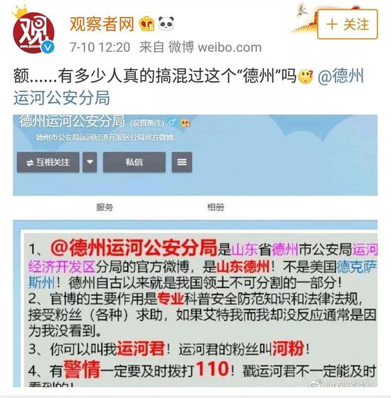 觀察者網在微博上艾特德州運河公安分局官方微博: