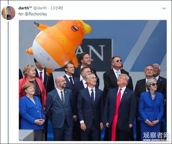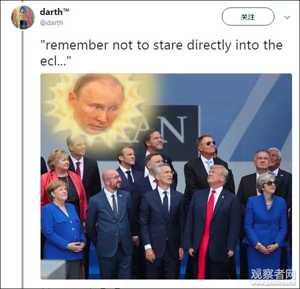 該照片目前已經被西方各大主流媒體使用,作為其報道北約峰會的頭圖,比如美國《新聞周刊》、《時代》等。