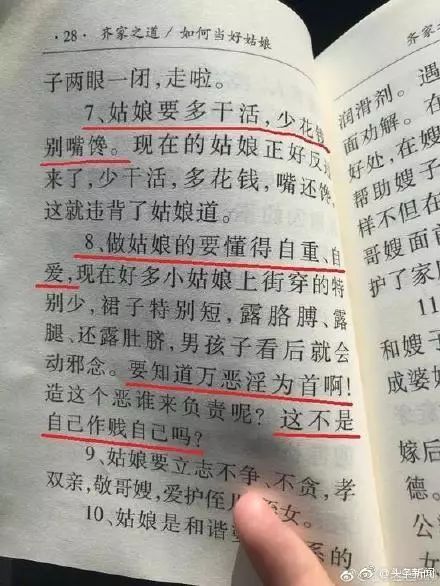 “姑娘要多干活,少花錢,別嘴饞,現在的姑娘正好反過來了,少干活,多花錢,嘴還饞,這就違背了姑娘道……”網友對小冊子上的一些話表示憤怒,認為這是打著傳統文化的旗號禁錮人們思想的歪理,內容歧視女性、挑撥家庭和睦、挑戰醫學常識。