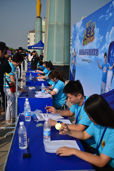 王家衛在一部電影中寫到:“跑步這么私人的事情,怎么可以隨便跑給人家看?”但事實上,跑步這么時尚的運動,一定要大家一起跑才happy!更何況咱們都市頻道的三位當家花旦,還要領跑呢!這不,開跑前一天,我們的工作人員正在搭建舞臺,一張擺在角落的報名臺前,就圍滿了報名的人!工作人員不得不臨時開始登記,直到天色漸暗,人群才逐漸散去!