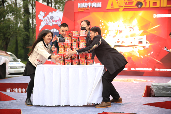 當天的演唱環節,涌現出了高音哥、清新姐等一眾實力唱將,而在游戲環節“康師傅都是我的”中,女生們可就厲害了,使出了渾身解數,一位女生以一次抱得十一桶康師傅紅燒牛肉面的記錄登頂冠軍,連男生也甘拜下風。