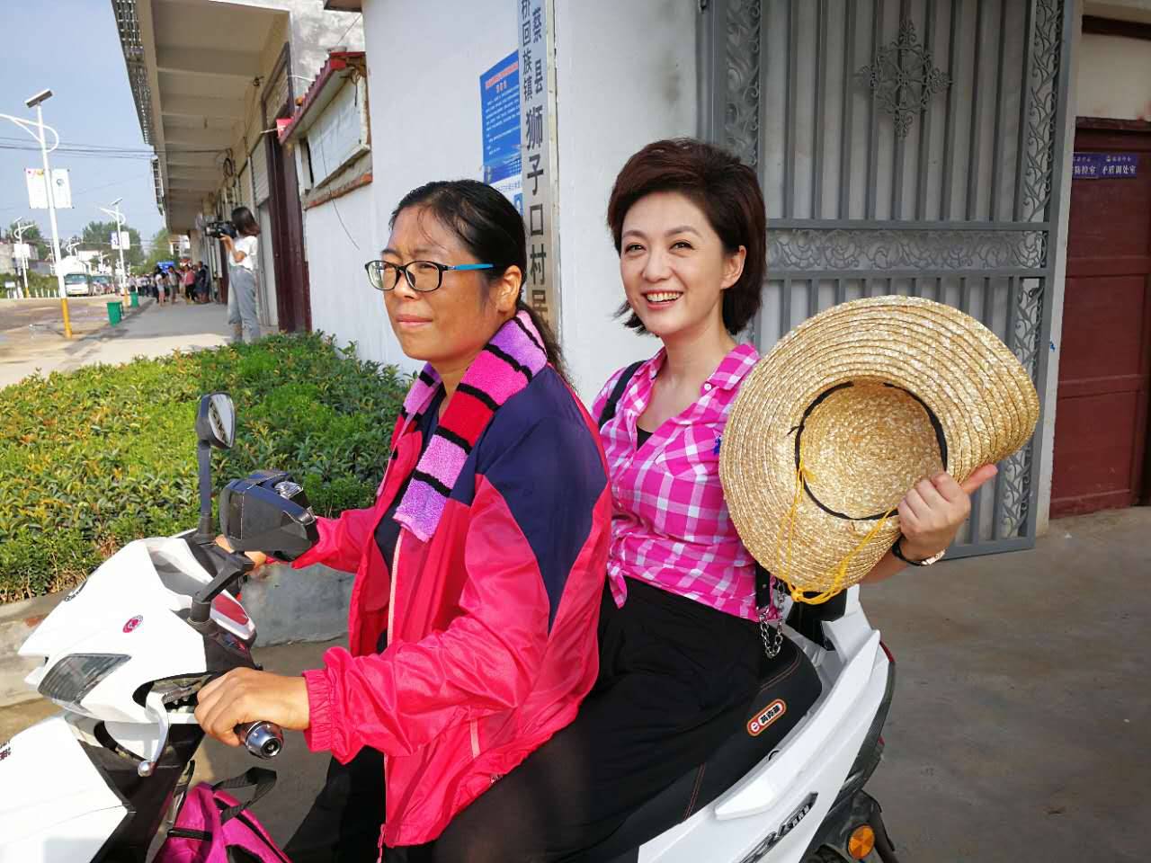 海霞和原玉榮走村串戶,都是坐著原玉榮的電動(dòng)自行車(chē)。原玉榮擔(dān)心她坐不慣,可海霞毫無(wú)怨言,感覺(jué)很開(kāi)心。一路在村子里走訪,村民們看到了原書(shū)記和坐在電動(dòng)車(chē)上,頭戴草帽的海霞,紛紛向她們熱情的打招呼。