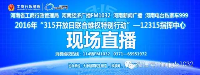 重要消息!3月14日上午9點30至11點,河南經(jīng)濟廣播將在河南省工商局12315消費者投訴舉報中心搭建直播室,與河南新聞廣播、河南電臺私家車999,并機直播“315開放日聯(lián)合維權(quán)特別行動”!