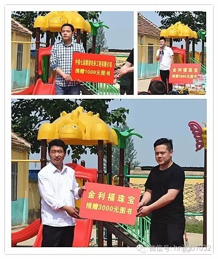 縣里領導和《知道不知道》主持人鵬哥紛紛上臺致辭,金利福珠寶和中鐵七局集團電務工程有限公司也進行了圖書的捐贈!