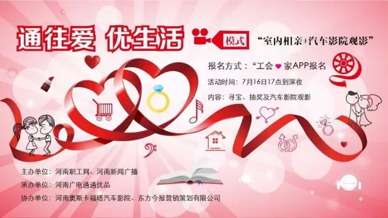 河南新聞廣播聯合河南省總工會職工網、河南廣電通通優品、河南奧斯卡福塔汽車影院等多家單位,為廣大聽眾、單身職工舉辦一期攜手憧憬新生活,體驗高品質生活為主題的相親活動——“通往愛,優生活”。