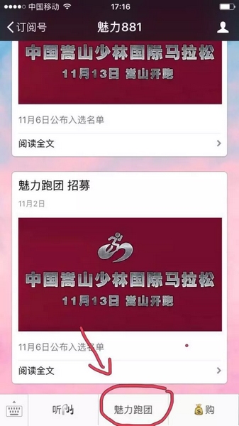 如果你想參加本次比賽的5公里跑項目,請在魅力881微信公眾平臺點擊菜單“魅力跑團”回復以下信息: