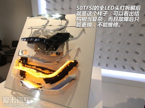 而另外一方面,就拿高配車型中所使用的LED頭燈來說,其設計的精巧程度絕不亞于一塊瑞士手表,而密密麻麻的LED中分別囊括了近光、遠光、示寬、轉向輔助、日間行車等等,其照明效果也絕不亞于我們熟悉的鹵素燈和HID燈。