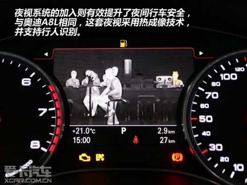 而在全新的頂配車型中,夜視系統的加入則有效提升了夜間行車安全,與奧迪A8L相同,這套夜視采用熱成像技術,并支持行人識別,在同級車中雖然并非首創,但絕對實用。