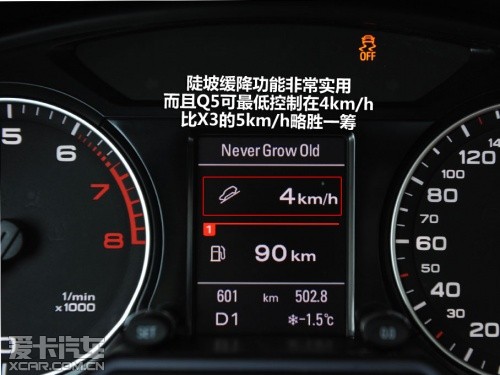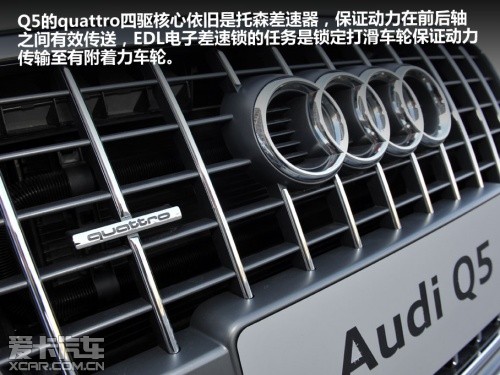 此刻的這輛Q5并未讓我們遇到諸如此類“半路折腰”的艱難險阻,因為quattro四驅系統絕不是等閑之輩,Torsen中央差速器會持續性將扭力源源不斷的輸送至前后軸,而此時EDL電子差速鎖的任務就只需要處理同軸上的打滑車輪,避免打滑車輪的動力流失,將動力傳遞至另一側車輪,從而最終實現經中央差速器傳導而來的百分之百驅動力全部施加到有附著力的車輪。就這樣,經過幾次挑戰性嘗試,這臺Q5還是比較輕松地完成攀爬且成功登頂。