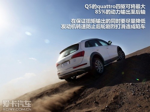 面對眼前更加陡峭的沙坡,quattro四驅系統可以說是毫無顧忌的展現了其自身的機械性優勢。所謂“機械性”,特指其干脆利索的工作效率。也就是說,quattro四驅系統的核心——Torsen中央差速器在工作時可以百分百執行當前的扭矩分配,并不會因其某一個環節出現狀況而受到干擾。