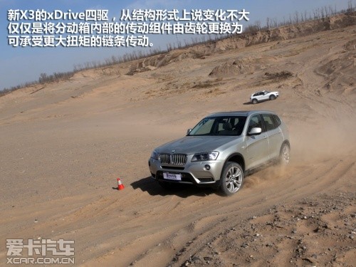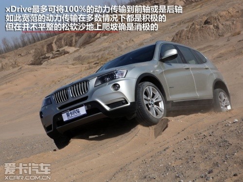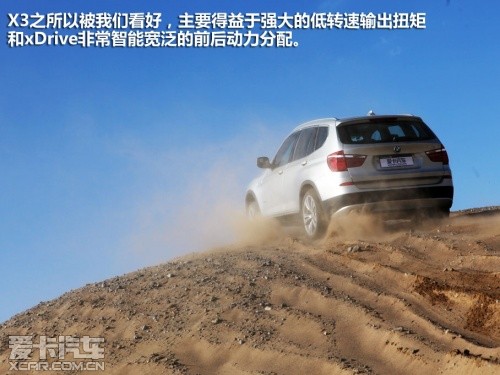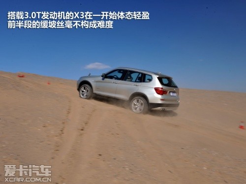 搭載3.0T發動機的寶馬X3,很顯然比Q5更為“肌肉”,但面對松軟的沙坡它也清楚的知道:光有腿部力量是遠遠不夠的,還必須要結合上肢力量才有可能登頂,此刻,xDrive系統起到了決定性的作用。