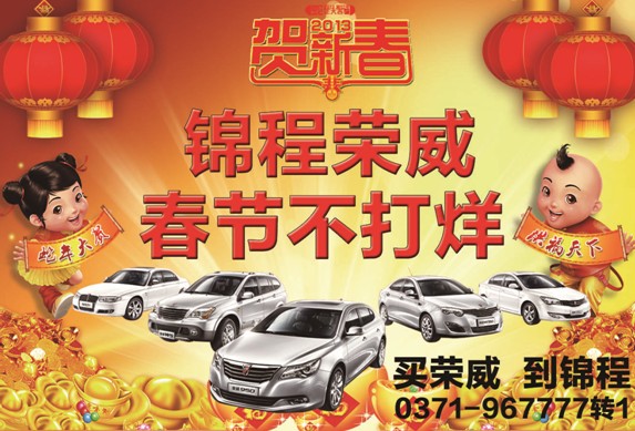 新春佳節到來之際,小編從河南錦程汽車銷售服務有限公司了解到,河南錦程榮威春節不打烊,和您一起過共度佳節。春節期間2月9日(除夕)-16日(初七),凡購車客戶均可獲得錦程送出的新春大禮包——年貨。錦程榮威推出了易享貸,更有超實惠兩年半零利息上汽金融政策,助您開車過年。更多優惠車型請咨詢:0371--967777轉1.