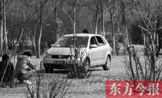 記者還發現,有的游人將汽車開進草坪后,在草坪上鋪張報紙,席地而坐,有的三五成群聚在一起,打起撲克。