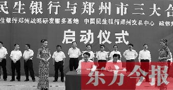 東方今報鄭州訊 6月24日,中國民生銀行與鄭州市政府共同主辦的三大合作項目啟動儀式在鄭東新區金融后臺服務園區舉行。這三大項目分別是:鄭州市政府與中國民生銀行簽訂《“共建和諧小區”政銀戰略合作協議》、中國民生銀行鄭州戰略研發服務基地奠基、中國民生銀行鄭州交易中心揭牌。省委常委、常務副省長李克,省委常委、鄭州市委書記吳天君,中國民生銀行董事長董文標,中國民生銀行副董事長、黨委書記、行長洪崎等出席儀式。