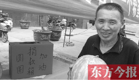 20日,東方今報報道了鄭州嵩山路辦事處嵩南社區(qū)聯(lián)合義工“練攤”叫賣愛心西瓜的事兒。昨日上午9時,嵩南社區(qū)郭文雅書記和工作人員來到了河南省煤炭總醫(yī)院,看望身患脊髓炎的小女孩圓圓,并送去了第一筆愛心西瓜善款。與此同時,嵩南社區(qū)門前的愛心瓜攤兒還在繼續(xù)叫賣,義工組織的愛心西瓜活動還在接力?!鯑|方今報首席記者 申子仲/文圖