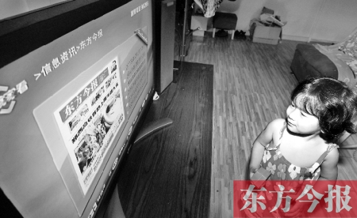 而在“電視節目”菜單中的“信息資訊”欄目中,你也能找到東方今報的身影,其中東方今報最新的信息資訊,都將出現在電視機上,只要你用遙控器選擇你想要看的內容之后,就能夠看到詳盡的新聞內容。
