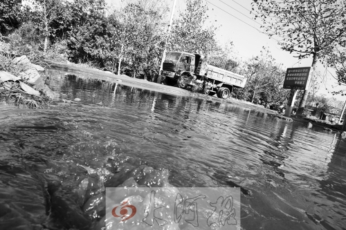 昨天上午11時,記者在西四環東約300米防汛路上看到,該路北側的中原區回民中學門前,修筑的沙石堤壩高約50厘米,阻擋防汛路上的積水,倒灌進入校園。而在防汛路上,約10米寬的路面,到處是積水,最深處可淹沒小轎車半個輪胎。由于路面積水太深,這條路除了機動車可以通行外,行人行經此處,紛紛停下腳步,不敢貿然涉水前進。