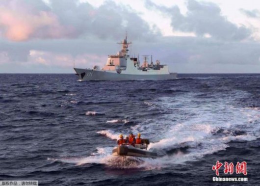 資料圖:據澳大利亞海軍4月11日發布的圖片顯示,中澳海軍海上聯合搜尋失聯客機。