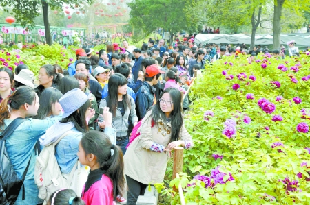4月4日,在洛陽王城公園,來自四面八方的游客在觀賞盛開的牡丹花。4月5日,為期1個月的第30屆洛陽牡丹文化節將隆重開幕,洛陽市各大公園的各色牡丹也將陸續綻放,中外游客盡可以感受古都洛陽的今日風采,觀賞洛陽牡丹的嬌艷芳容。 河南日報農村版記者 楊遠高 攝