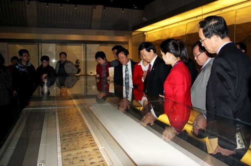 韓國朋友相繼參觀了河南博物院的《中原古代文明之光》基本陳列、《中原楚系青銅藝術館》、《河南古代玉器》、《河南明清館》等專題陳列的多個展覽。韓國朋友們精細地觀賞博物院陳展的文物,由衷感嘆中華民族祖先的智慧和博物院的陳列水準。曾80多次訪華、第64次來河南的“中國通”許由先生頗為內行的提問令講解員和陪同參觀的中國人員刮目相看。中韓建交的20多年來許先生一直在為兩國及兩國人民的友誼盡其所能地做著工作,他曾多次率團訪華,此次又為河南帶來了原首爾特別市瑞草區廳長趙南浩、原空軍士官學校校長吳昌煥和金星綜合電機株式會社會長等新老朋友。