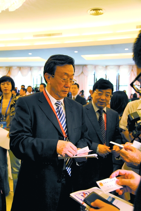 論壇開始前,郭庚茂一走進會場,就被眼尖的代表們認出,不斷有人主動去交換名片。論壇剛一結(jié)束,臺上嘉賓和臺下聽眾“呼啦”一下都擁到郭庚茂身邊,有的要名片,有的要合影,有的要預(yù)約采訪。郭庚茂微笑著一一滿足大家的要求。