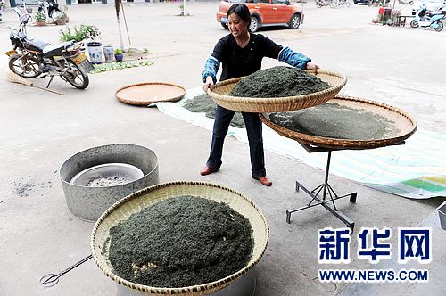 4月10日,信陽市浉河區董家河鎮的農戶在晾曬烘烤茶葉。