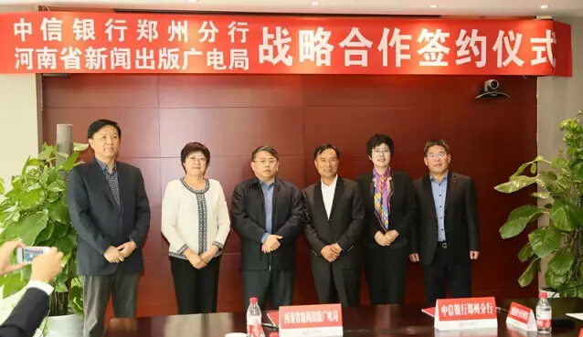 中信集團與省廣電局有著悠久的合作歷史和良好的合作基礎(chǔ),早在2006年,中信集團作為戰(zhàn)略合作伙伴入股河南有線電視網(wǎng)絡(luò)集團有限公司,與省廣電一道,為整合全省有線電視網(wǎng)絡(luò)、推進有線電視數(shù)字化等作出了積極的貢獻。本次中信銀行鄭州分行與省廣電局簽署戰(zhàn)略合作協(xié)議,中信銀行鄭州分行將依托中信集團的綜合金融服務(wù)平臺優(yōu)勢,集中優(yōu)勢資源,為省廣電局提供一攬子、全方位金融服務(wù),支持省廣電局在媒體融合發(fā)展、云計算和大數(shù)據(jù)、電子商務(wù)、跨境E貿(mào)易、文化地產(chǎn)等新興產(chǎn)業(yè)領(lǐng)域持續(xù)做大做強,助力省廣電局打造中西部地區(qū)實力最強、規(guī)模最大并具有很強傳播力、公信力、影響力的新型媒體集團。
